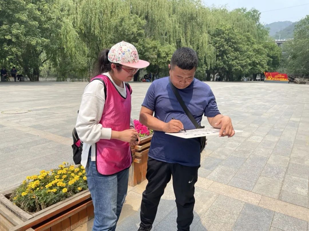 隨后,各組隊員開始尋找游客,寫下對祖國的美好祝愿。游客們用五彩的畫筆表達出自己對祖國、對黨的熱愛,將心中的祝福濃縮在小小的畫筆之上?!拔覟槲覀儚姶蟮淖鎳械津湴粒兄x黨,感謝祖國,希望祖國越來越強盛,更加有力量!”游客們紛紛寫下自己的祝福。