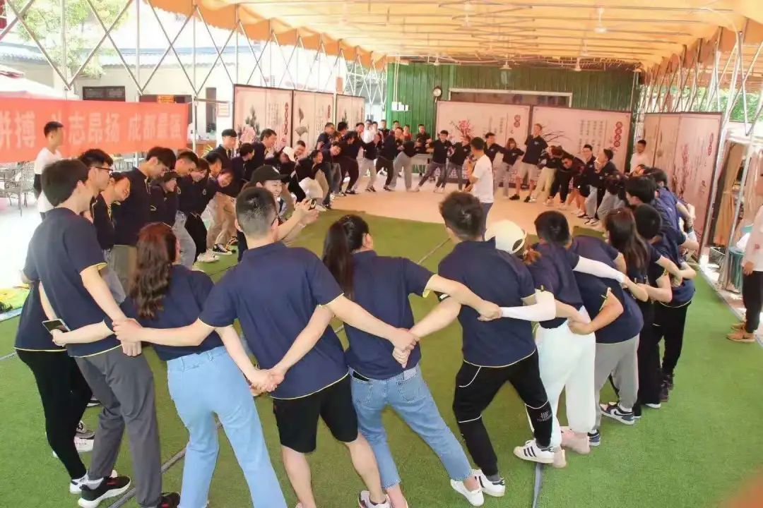 游戲現(xiàn)場,首先,通過熱身,破冰環(huán)節(jié)分隊,選隊長,制定隊旗,對歌,團(tuán)建口號,陣型等,達(dá)到團(tuán)隊破冰融合,初步形成熱烈的團(tuán)隊氛圍,滿滿正能量口號與隊歌體現(xiàn)了樂博樂博老師們的積極,熱情,以及川軍的精氣神。