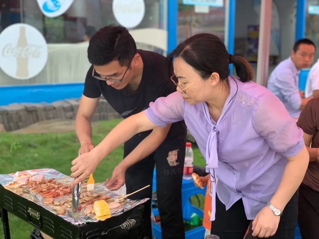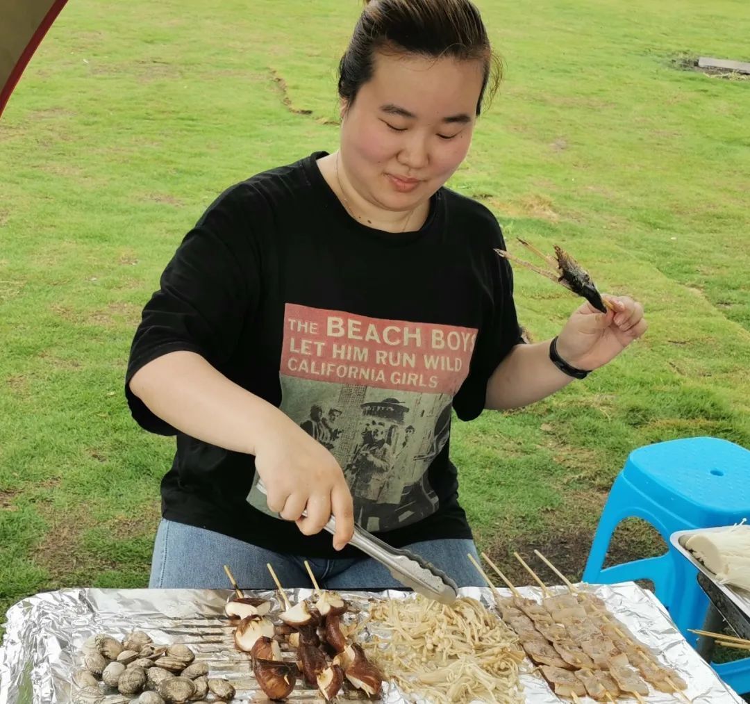 在簡單的舒展筋骨之后,我們就迎來了團(tuán)建之花——BBQ,七人一組各自為營,有的火一下就旺了,烤得不亦樂乎;有的火比較慢熱,烤得自然也就比較悠閑;有的自家的火還在預(yù)熱中,但已經(jīng)饑腸轆轆,便開始出去“化緣”了,回來之后還會跟同組的人品鑒下口味,各人各景好不熱鬧。