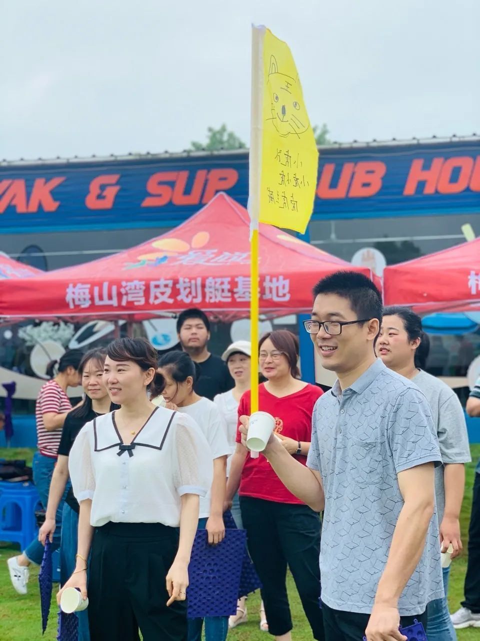 安防科技團(tuán)建日清晨,八十幾位年輕人一起坐著大巴,遠(yuǎn)離忙碌的城區(qū),沿著被霧氣環(huán)繞的太河路,到了目的地——皮劃艇團(tuán)建活動基地。在簡單的整頓之后,我們隨機(jī)分成了六個隊伍:帝壹隊、你說的對隊、小虎隊、必勝隊、勇敢隊以及炮兵隊,并展示了別出心裁的旗幟以及口號。