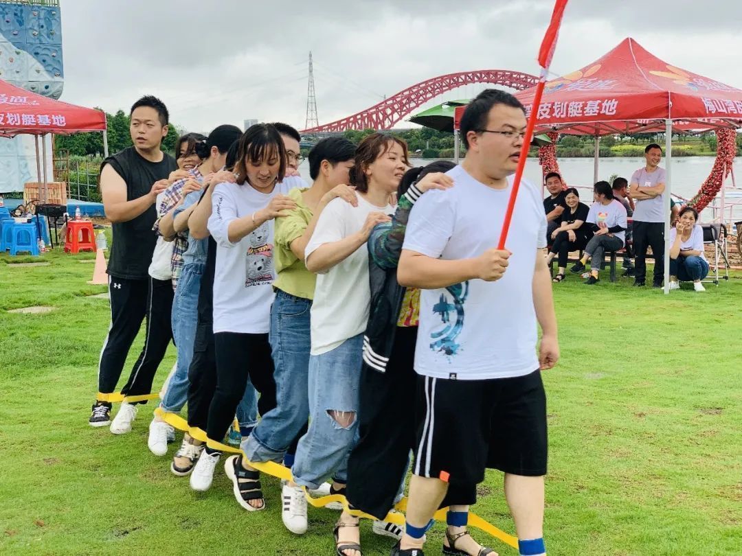 第二個團(tuán)建項目——同舟共濟(jì)。十個人排成一列縱隊,左右腳的腳腕上綁上道具,十個人被道具固定在一列縱隊上,因此除了齊心協(xié)力別無他法?!暗垡缄牎痹诰毩?xí)的時候十分順利,而同組比賽的“小虎隊”則磕磕絆絆,帝壹隊練習(xí)完成了一圈之后,“小虎隊”幾乎還在原地停滯不前。比賽正式開始,兩隊出發(fā)都是順利的,但在進(jìn)行到四分之一的時候有一個隊伍發(fā)生了失誤,另一隊則是穩(wěn)穩(wěn)當(dāng)當(dāng)?shù)赝白撸茼樌啬孟铝说谝幻?。或許你會以為失誤的是練習(xí)磕碰的“小虎隊”,但現(xiàn)實卻是“帝壹隊”在一路發(fā)生了四次失誤,導(dǎo)致最后的結(jié)果很不理想。有時候哪怕準(zhǔn)備不夠,我們也不能為此退縮,堅定地往前走,誰又能說你一定會失敗呢,但如果退縮了,那結(jié)果肯定是顯而易見的。