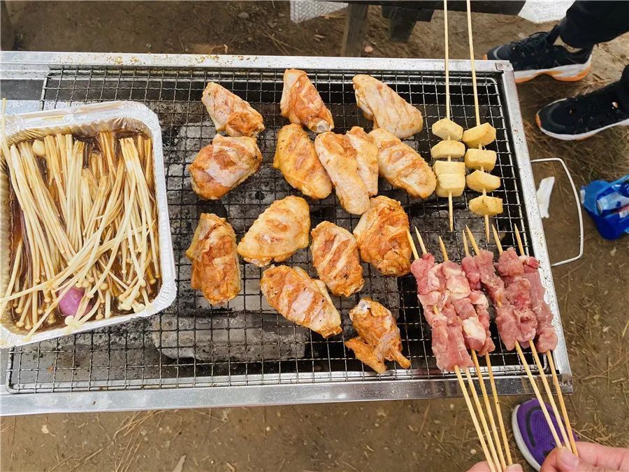 經(jīng)過各種調(diào)料腌制的雞翅、生蠔、牛肉串、羊肉串等食物在烤架上漸漸香味四溢,令人垂涎欲滴,大家吃著烤好的各種食品,互相交流著自己在工作和生活中遇到的各種趣事。