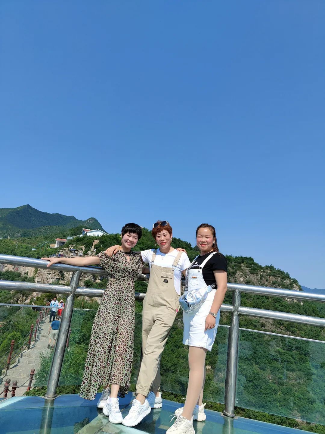 公司旅游團建第二天,大家重攬通天峽的全景,乘上纜車,登上多彩絢麗的七彩棧道,面對凌空的腳下,每個人的臉上都顯露出緊張的神情,但大家相互攙扶,相互鼓勵,如一家人一般其樂融融。
