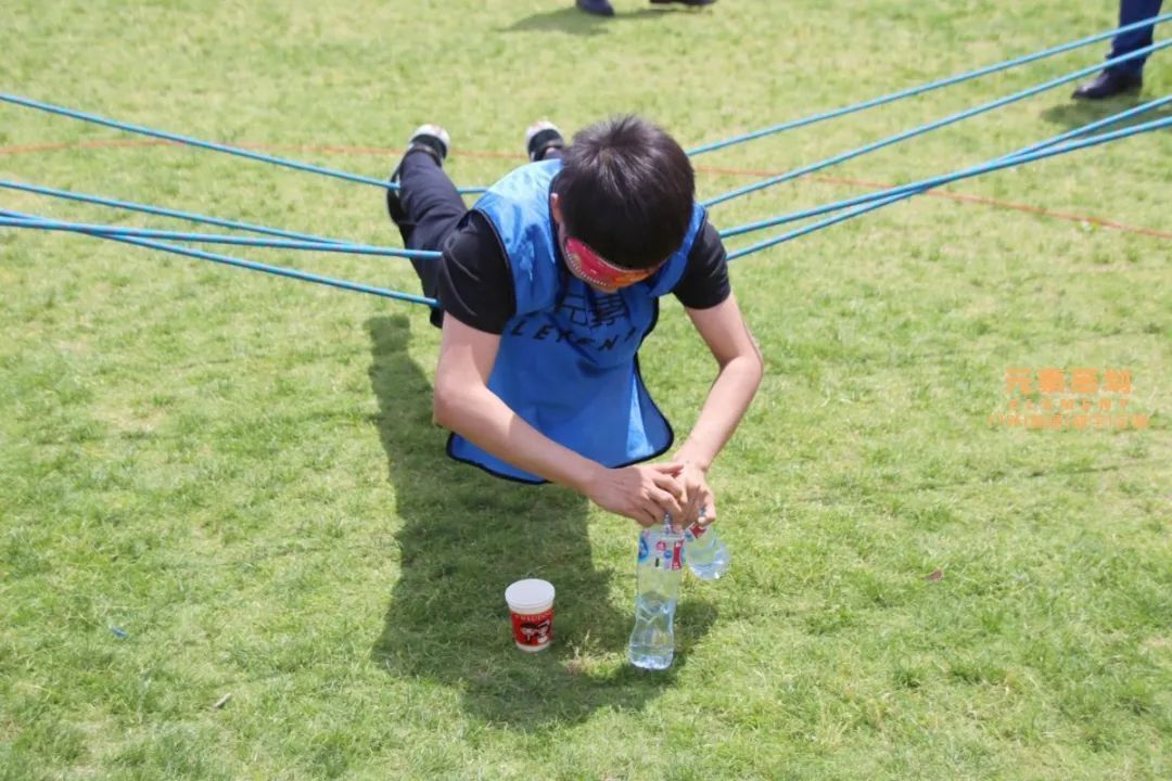 團(tuán)隊用兩根繩將取水成員送入圈內(nèi),隊員在不接觸地面的情況下取出荊棘中的水瓶,這個任務(wù)培養(yǎng)團(tuán)隊成員各盡所能,共同努力完成任務(wù)的能力。
