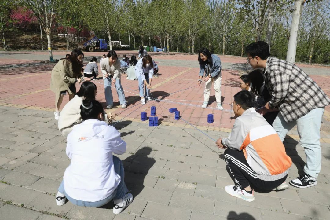 “合力筑塔”團(tuán)建項(xiàng)目,最考驗(yàn)團(tuán)隊(duì)的統(tǒng)一指揮、統(tǒng)一口令和統(tǒng)一行動(dòng)能力。各組老師每人一根繩索,共同操控一個(gè)吊鉤,將積木逐塊吊起并高高地摞到一起。這個(gè)項(xiàng)目非常有挑戰(zhàn)性,稍有不慎,前功盡棄。各位組員屏氣凝神、同進(jìn)同退、合作默契,真正成為一個(gè)整體。