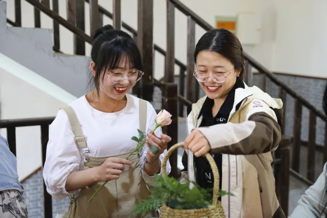 平日忙于教學(xué)工作的老師們,這一天很難得親身體驗(yàn)了一次插花的魅力。應(yīng)季花材、葉材數(shù)十種,手提花盒、花籃、絲帶、剪刀一應(yīng)俱全,老師們?nèi)齼蓛蓢狼?,現(xiàn)學(xué)現(xiàn)做,親自動(dòng)手,把自己內(nèi)心深處的美一刀一剪、一枝一蔓地呈現(xiàn)為一個(gè)個(gè)絢麗的花籃。