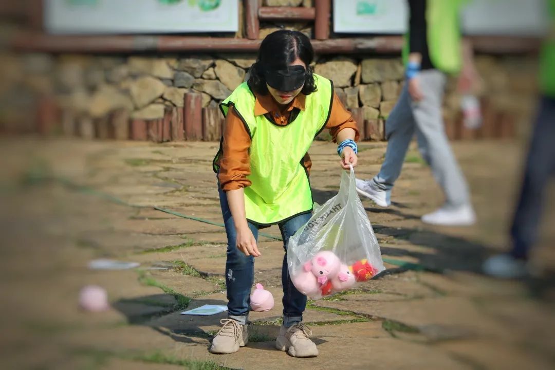 第三個團(tuán)建項(xiàng)目:每個隊(duì)伍派出3男3女依次上場,在隊(duì)友的指揮下在指定區(qū)域內(nèi)蒙眼攻擊對手。