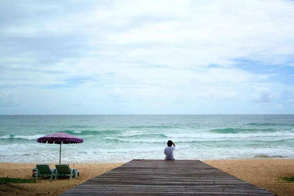 坐在海邊