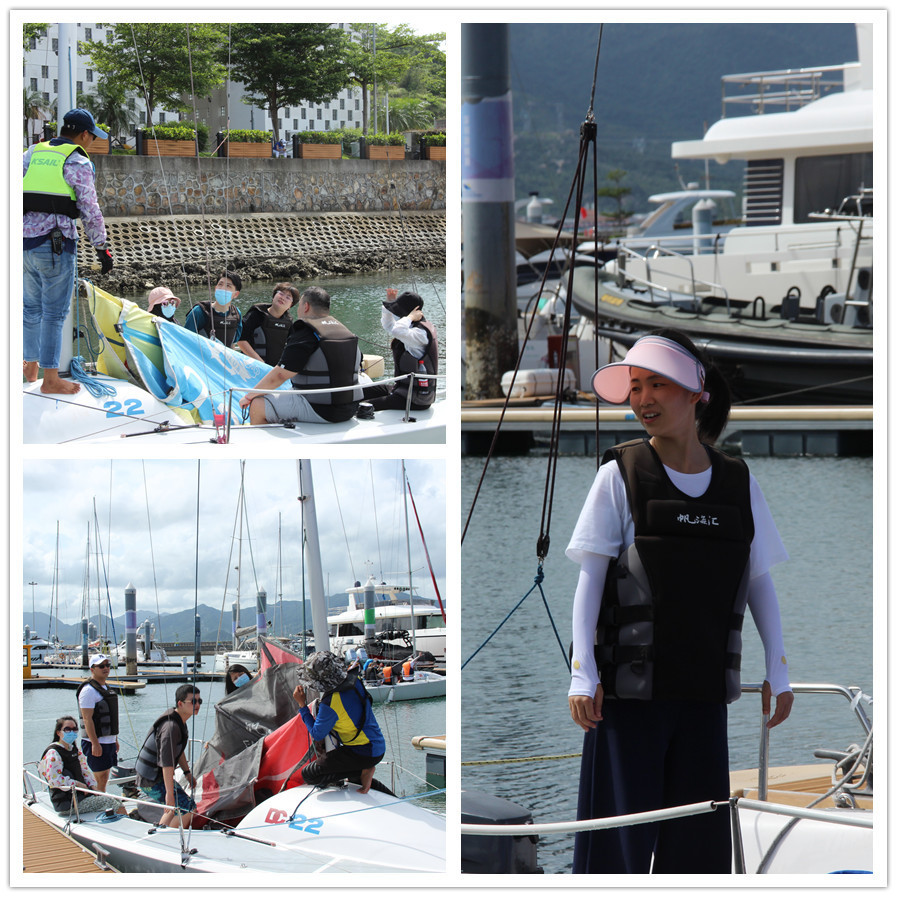 我們可愛的小胖船長教導大家如何正確安全登船、帆船的基本操作要領(lǐng)、帆船行駛原理、出港起航的實際操作(判斷風的方向、升降帆的實操、順風、迎風轉(zhuǎn)向、掌舵體驗(直線航行)、船務(wù)整理等)。