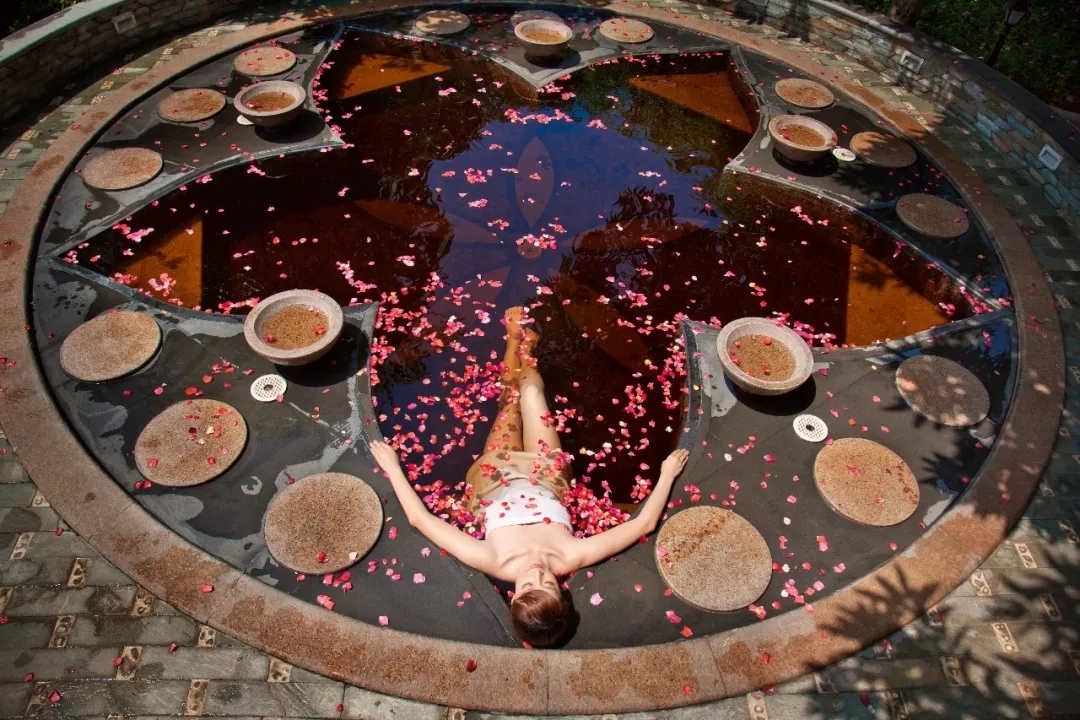擁有各種各樣的風(fēng)格、功能各異,富于養(yǎng)生特色的溫泉浴池,有個性的“空中溫泉”。獨具匠心的溫泉設(shè)計、絕無僅有的空中溫泉,以獨樹一幟的高度;有根據(jù)五行八卦劃分的禪園、境園、趣園、樂園、仙園、康園六大區(qū)域共52個泉池等。
