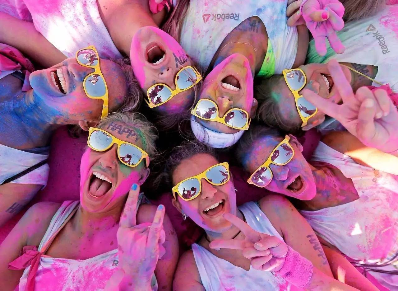 彩虹跑也叫彩色跑(The Color Run),是一項被稱為“地球上最快樂的5公里賽跑”,參加者身著白色T恤,跑步過程中經過不同的彩色站,會被從頭到腳拋撒彩色粉末。據(jù)悉,彩色粉末由純天然玉米粉制成,對人體和環(huán)境無害。