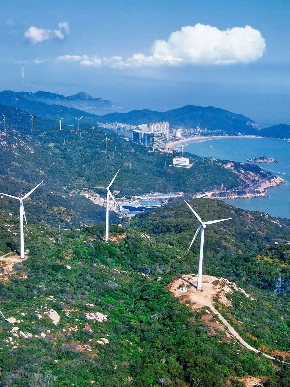 風車遍布山間,和周圍的青山碧海著實相配,也給這座島蒙上了一層文藝的氣息。當風一起,緩緩轉(zhuǎn)動的風車如詩如畫,仿佛進入到了動漫《風之谷》當中。