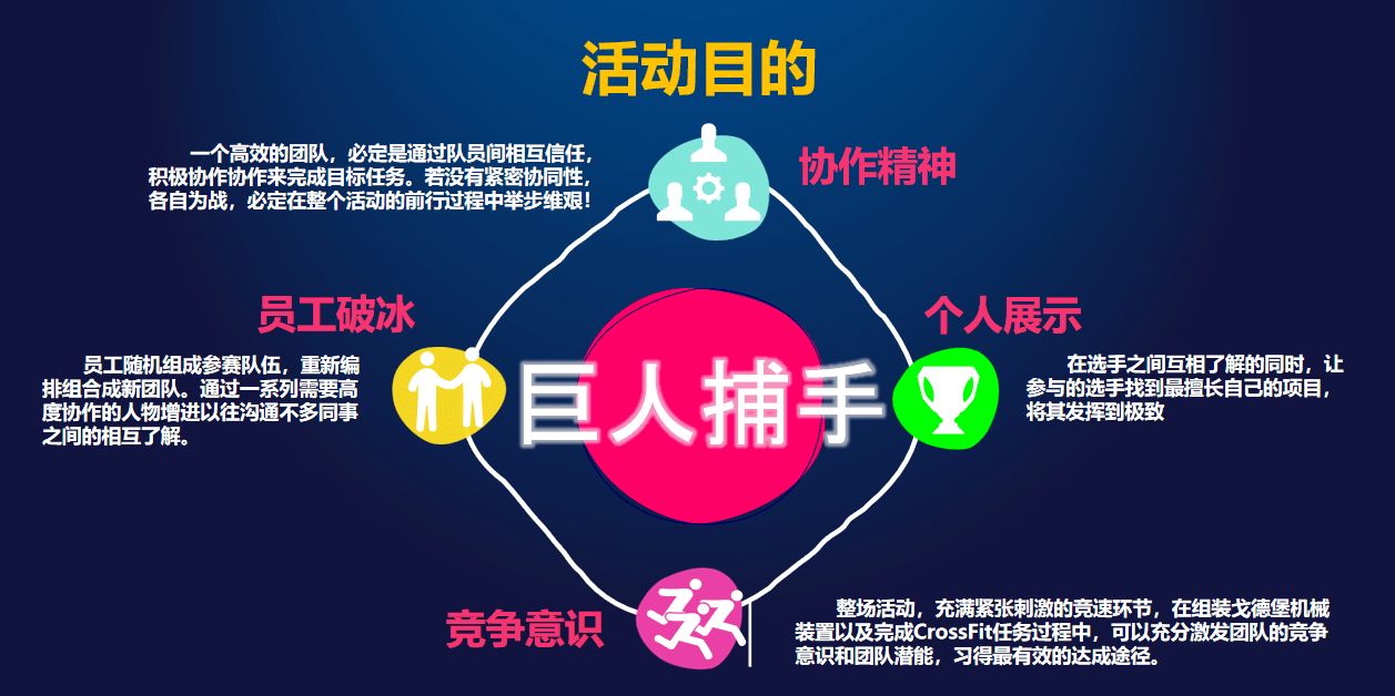 巨人捕手主題團(tuán)建通過結(jié)合代入感十足的電影IP,將哥德堡機(jī)械裝置的組建與時下最熱門的CrossFit健身項(xiàng)目進(jìn)行有機(jī)的結(jié)合,讓活動豐富多彩,而又考驗(yàn)團(tuán)隊(duì)協(xié)作能力,同時又提供了一個個人“展現(xiàn)魅力”的平臺。