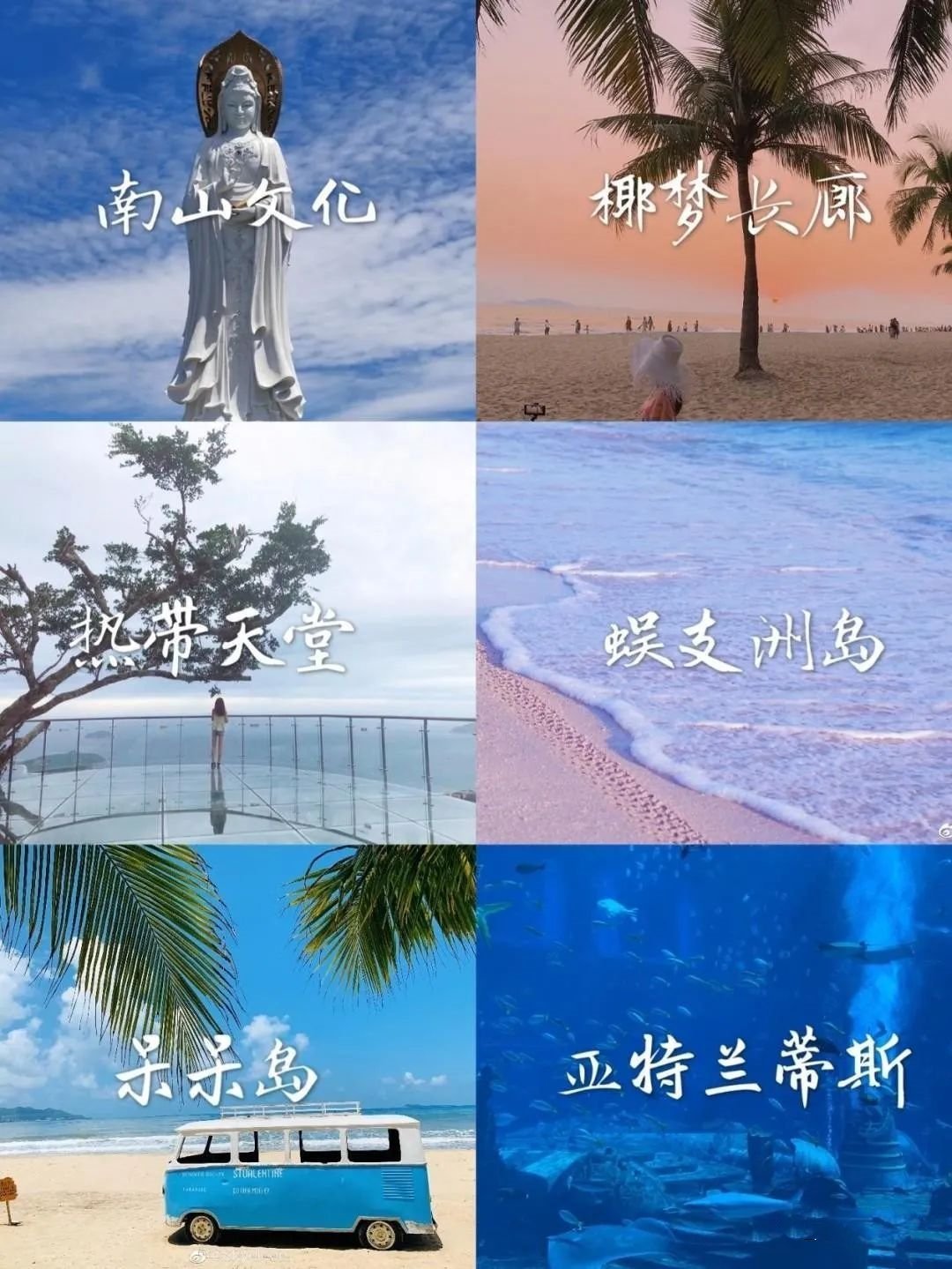 海南三亞景點的旅游元素大致分為玩海,雨林,人文和打卡景點。