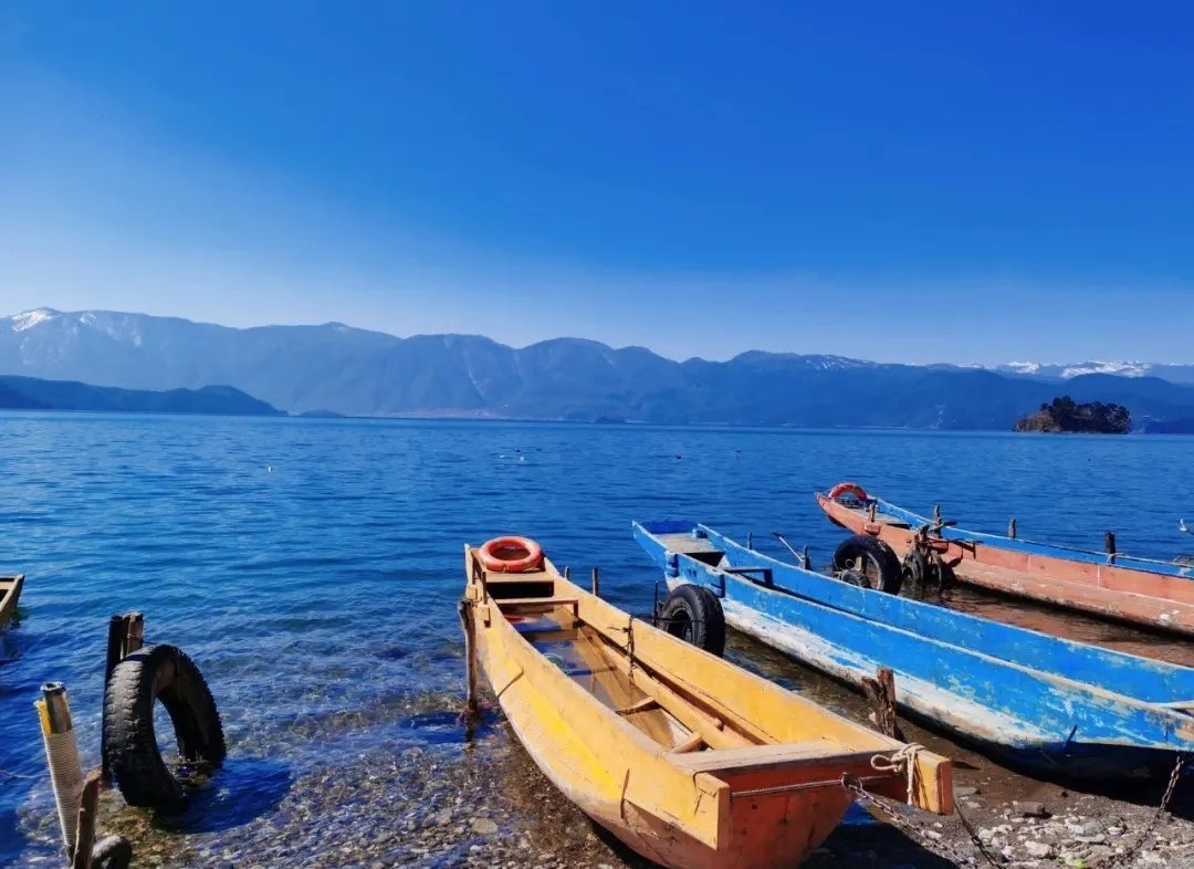 瀘沽湖,又名左索海,俗稱兩海,猶如一顆鑲嵌在高原上的藍寶石珍珠。清澈見底的湖水在陽光下蕩漾,像一面鏡子,像一顆鑲嵌在群山中的藍瑪瑙,將所有的美景展現(xiàn)在眼前。